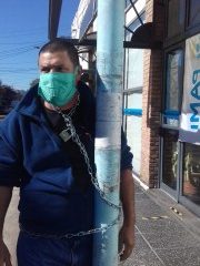 Un vecino de Los Charrúas se encadenó frente al PAMI para que le autoricen un tratamiento.