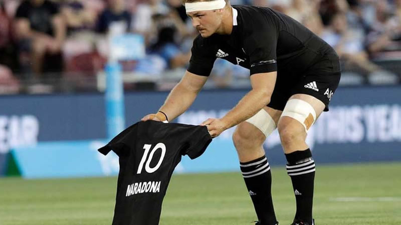 Los jugadores de All Blacks se formaron y Sam Core, su Capitán, tenía algo en la mano y fue hasta la mitad de la cancha. Allí, ante la vista, seguramente azorada de los jugadores argentinos, el jugador neocelandés desplegó una camiseta negra de All Blacks con la 10 y la palabra Maradona. La emoción se apoderó del estadio y un estallido hubo en la gente, que alcanzó a ver la camiseta y aplaudió el gesto.